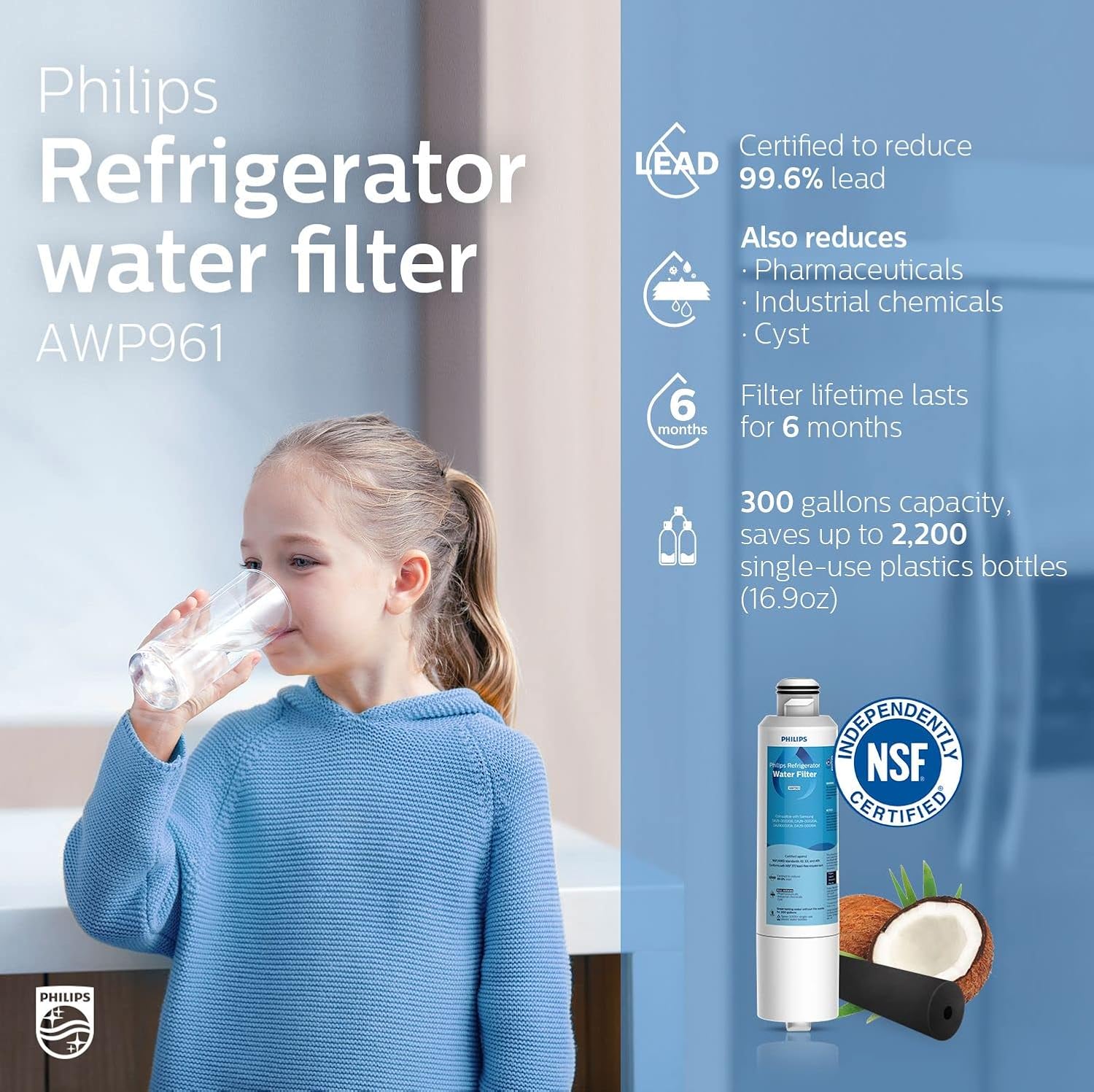 Philips AWP961 NSF/ANSI Certified Refrigerator Water Filter Replacement for Samsung DA29-00020B, HAF-CIN/EXP, DA97-08006A/B, DA29-00019A, 46-9101, RFG298HDRS, RS25J50, RF263TEAES, RF4287HARS